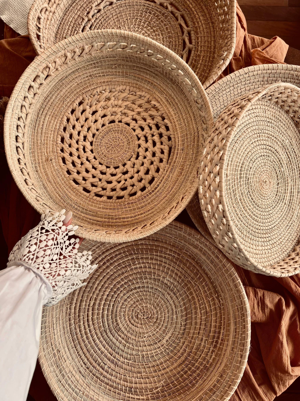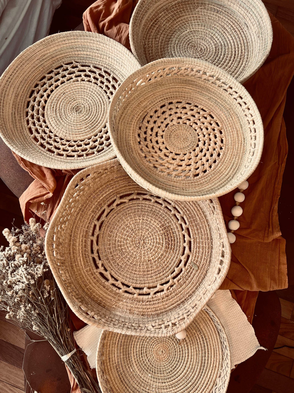 Medidas: - Grande: 8 cm alto x 38 cm diámetro aprox. - Mediana: 8 cm alto x 30 cm diámetro aprox.