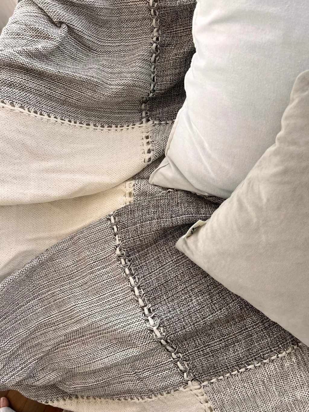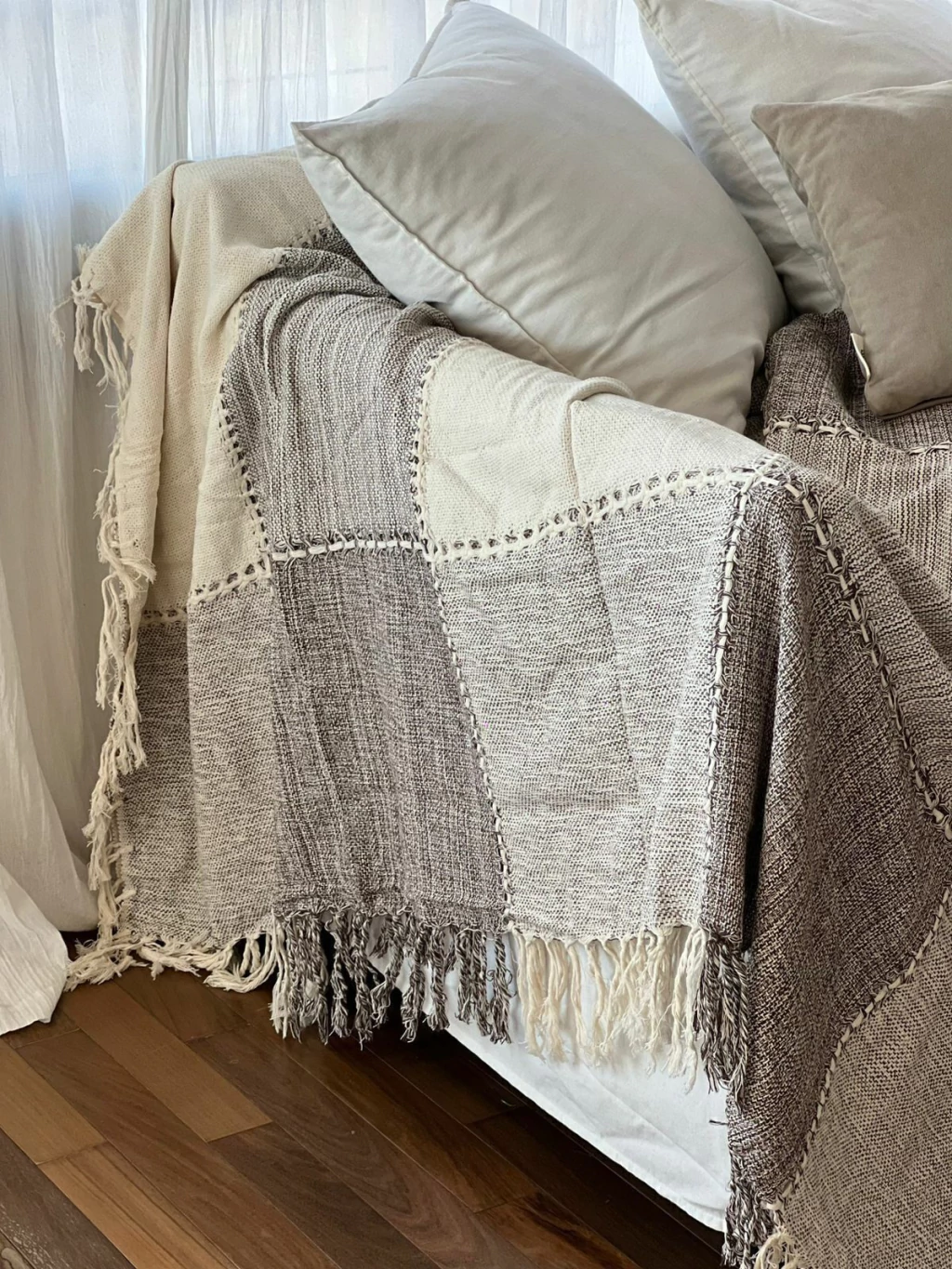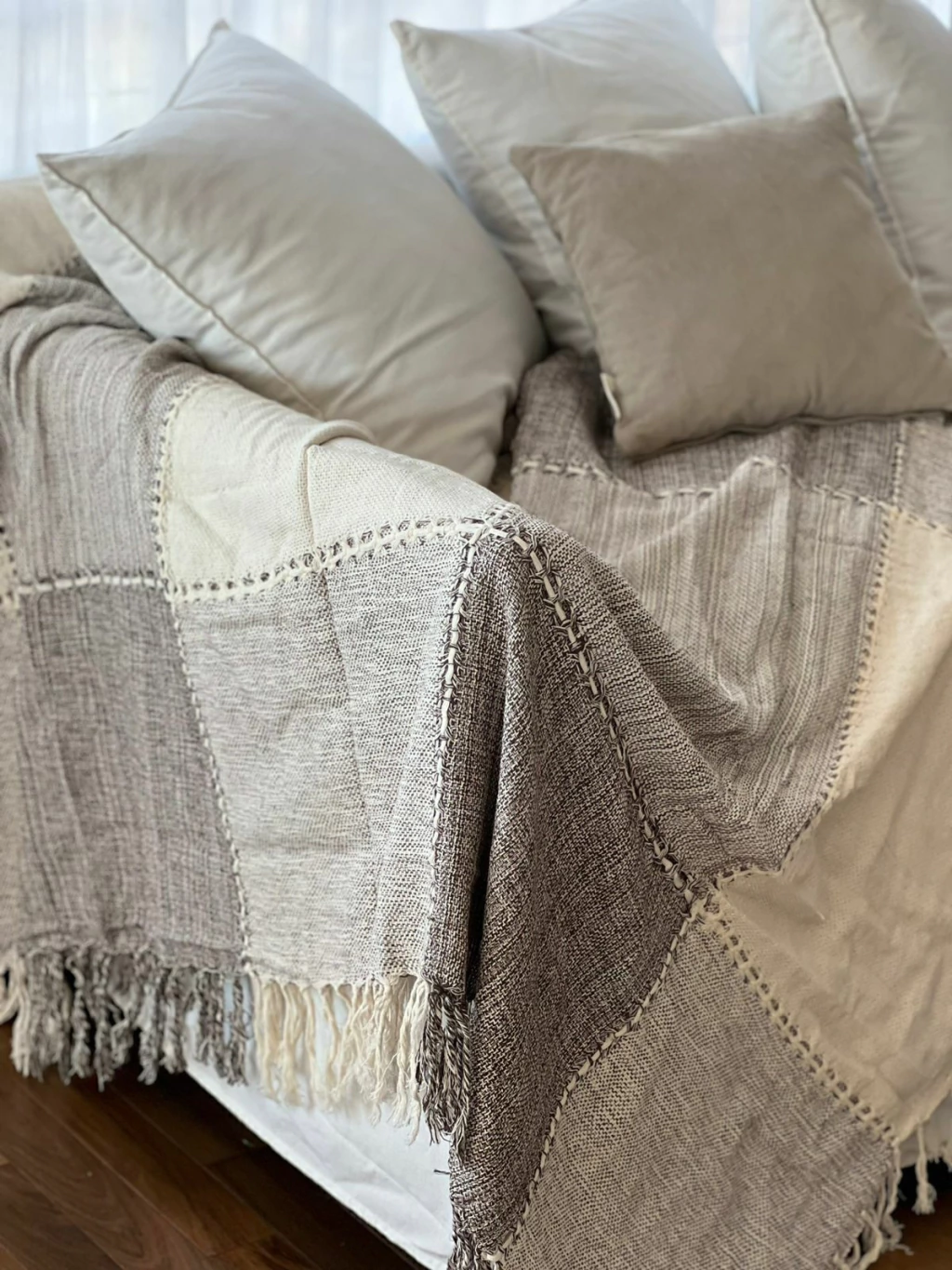 Confeccionada artesanalmente en 100% ALGODON. Es pesada e ideal para usar como pie de cama o manta para sillón. Aporta calidez y estilo a tu hogar.