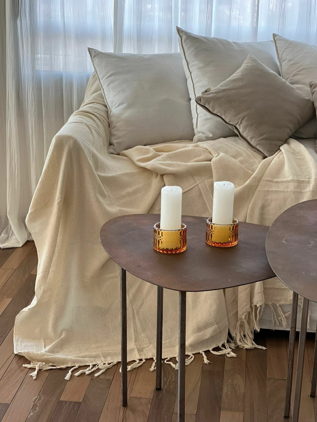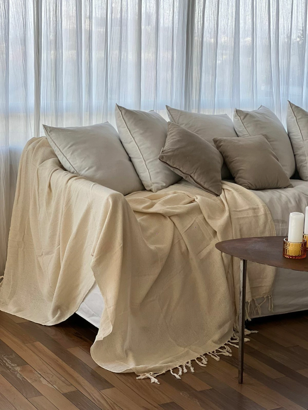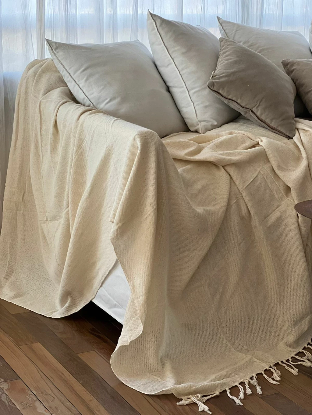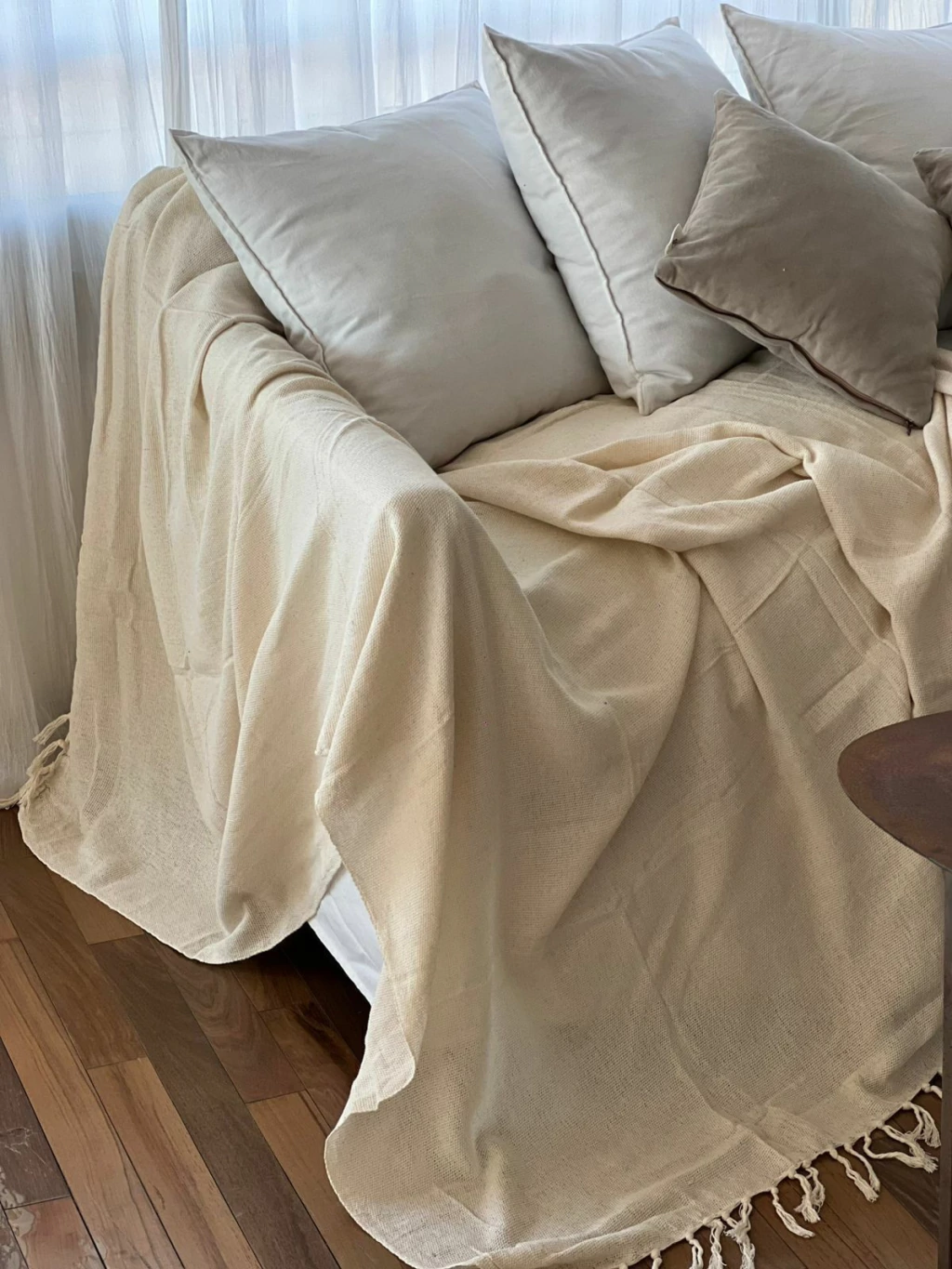 Confeccionada artesanalmente en 100% ALGODON. Es pesada e ideal para usar como pie de cama o manta para sillón. Aporta calidez y estilo a tu hogar.