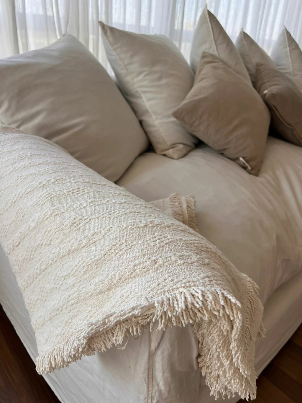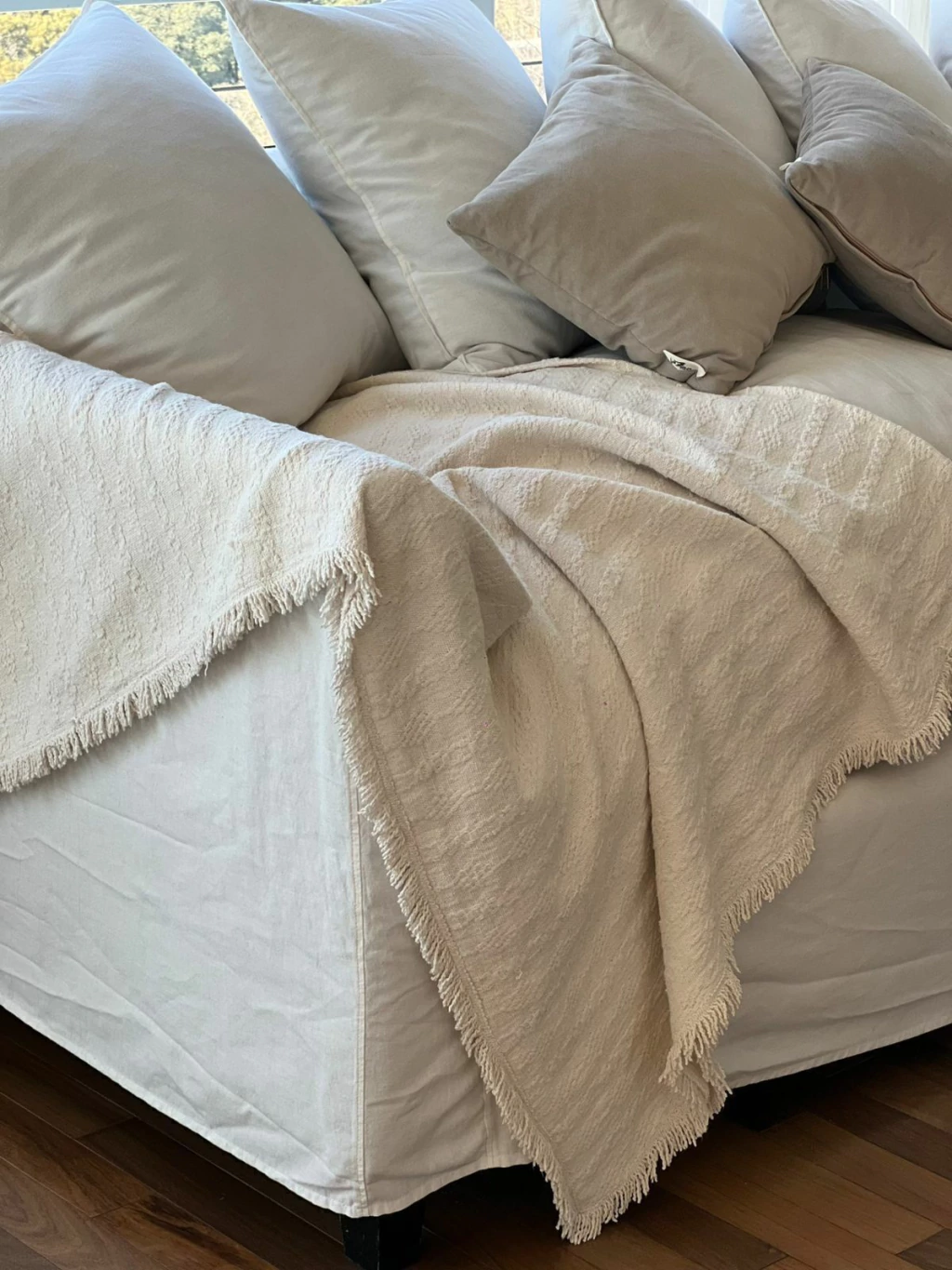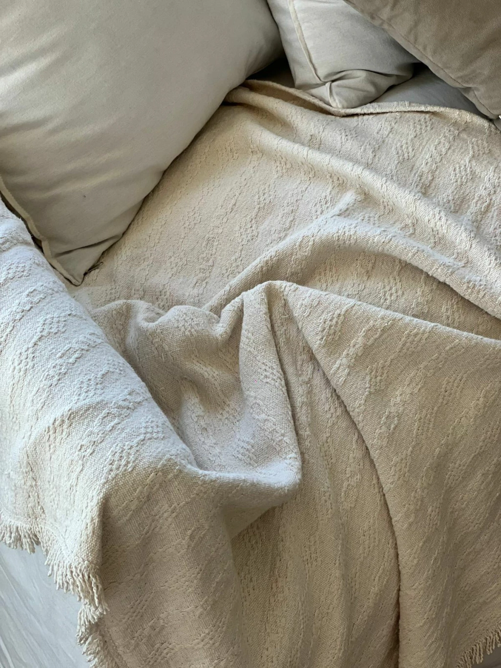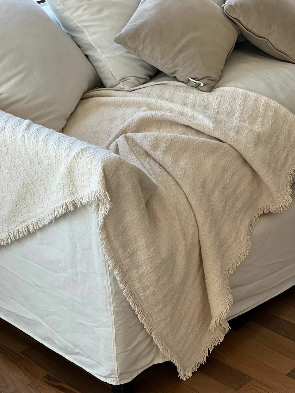 Confeccionada artesanalmente en 100% ALGODON. Es pesada e ideal para usar como pie de cama o manta para sillón. Aporta calidez y estilo a tu hogar.